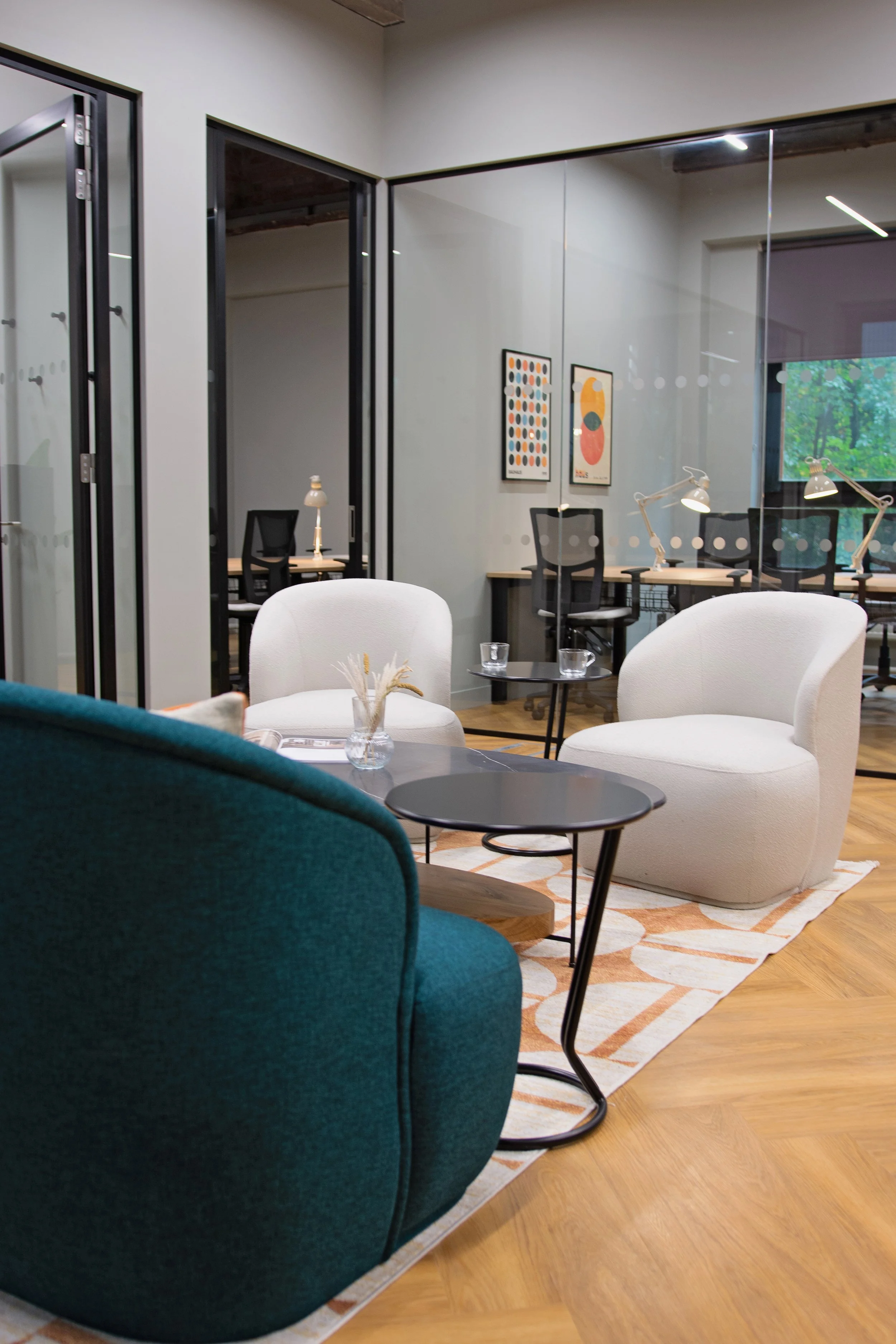 Every detail in these suites was selected with tenant comfort in mind. A smart TV was installed in the meeting room, offering tech-enabled functionality, while the kitchen was equipped with a coffee machine, providing tenants with extra convenience. Decorative lighting, real plants, and carefully selected artwork throughout the suites added warmth and personality, creating a balanced, inviting atmosphere that would appeal to a range of tenants.